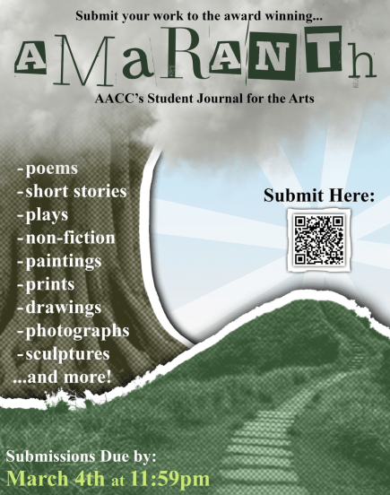Hello AACC students and Alumni! Amaranth is proud to let you know that submissions are OPEN.